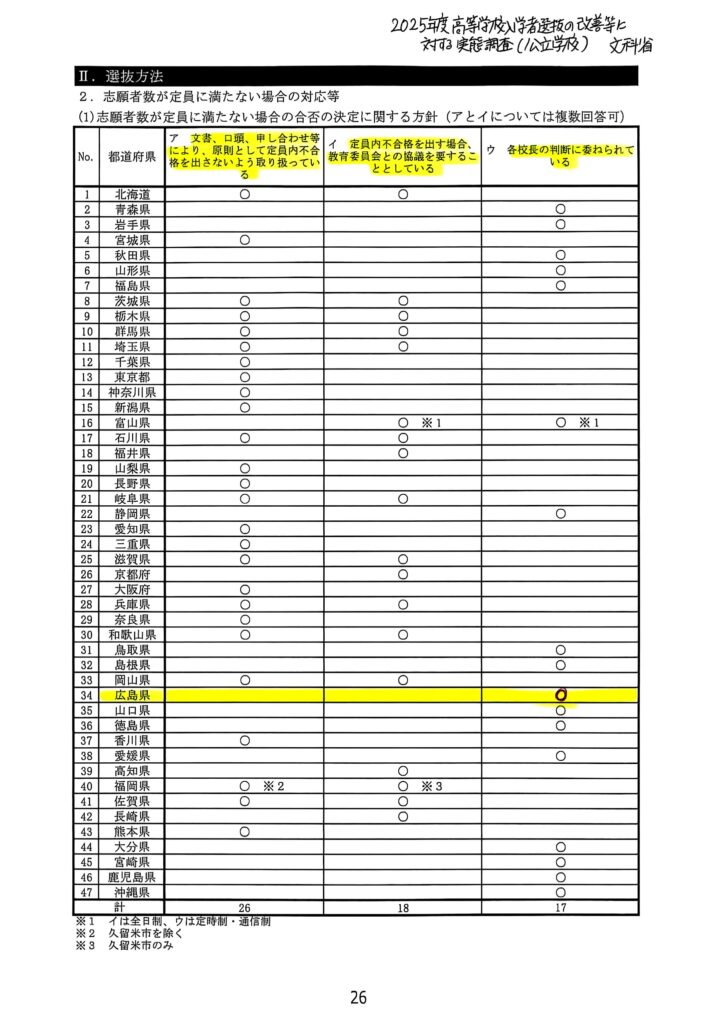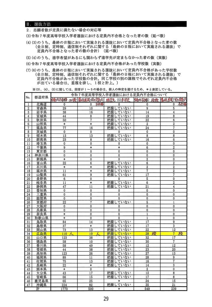 2025年度高校入試に続き、2026年度入試においても、広島県は多くの定員内不合格を出しました。全入協(私教連・広教組・高教組)は強く抗議し、二次選抜においては出さないことを要請しました。