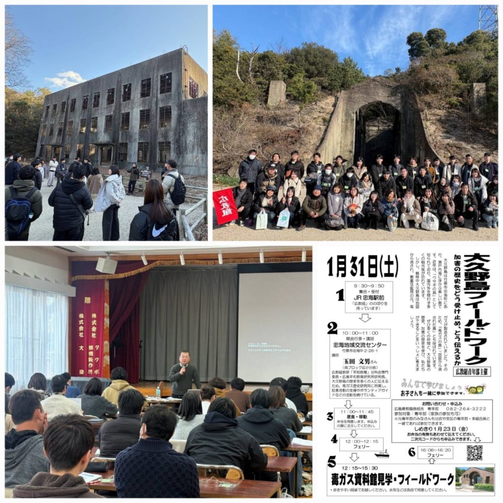 1月31日、広教組青年部主催で「大久野島フィールドワーク」を行い、50人近い参加がありました。